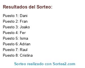 Lista de participantes: Adrian, Fer, Joako, Fran, Cristina, Raul, Isma, Dani.