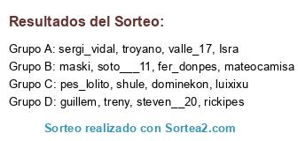 Lista de participantes: pes_lolito, troyano, shule, soto___11, maski, guillem, sergi_vidal, steven__20, valle_17, treny, luixixu, fer_donpes, mateocamisa, Isra, rickipes, dominekon.
