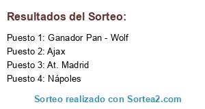 Lista de participantes: At. Madrid, Nápoles, Ajax, Ganador Pan - Wolf.