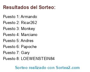 Lista de participantes: Gary, Armando, Marciano, Monkey, LOEWENSTEIN84, Papoche, Ricar262, Andres.