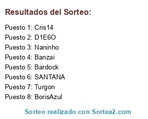 Lista de participantes: SANTANA, Bardock, Cris14, BorisAzul, Turgon, D1E6O, Banzai, Naninho.