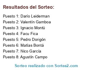 Lista de participantes: Facu Fica, Nico García, Agustín Campo, Pedro Dorigón, Ignacio Montú, Matías Bontá, Darío Leiderman, Valentín Gamboa.