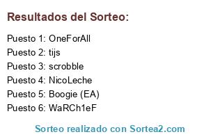 Lista de participantes: Alesabina, Rupture, c1ruja, WaRCh1eF, Elrohir, Boogie (EA), Asterixdelsur, Paleta, W!v3rn^, nacho84c, pelado_seed, rinGo., Tomasevic, Lea_akd, tincho_bostero, NicoLeche, ljungberg, Nicomap, gonza_catanFC, Ragnarok-Arg, Vitter, scrobble, tijs, OneForAll.
