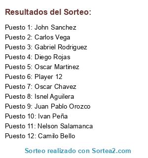 Lista de participantes: Diego Rojas, Oscar Chavez, Nelson Salamanca, Carlos Vega, Ivan Peña, Juan Pablo Orozco, Isnel Aguilera, Gabriel Rodriguez, Oscar Martinez.