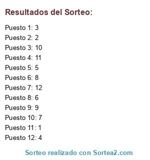 Lista de participantes: 1, 2, 3, 4, 5, 6, 7, 8, 9, 10, 11, 12.