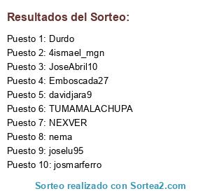 Lista de participantes: TUMAMALACHUPA, josmarferro, davidjara9, nema, Durdo, JoseAbril10, NEXVER, Emboscada27, joselu95, 4ismael_mgn.