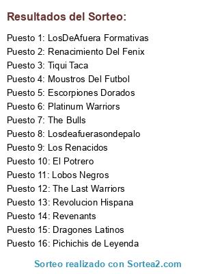 Lista de participantes: Losdeafuerasondepalo, Lobos Negros, The Last Warriors, Moustros Del Futbol, Platinum Warriors, Renacimiento Del Fenix, Revenants, El Potrero, Escorpiones Dorados, The Bulls, LosDeAfuera Formativas, Tiqui Taca, Pichichis de Leyenda, Revolucion Hispana, Dragones Latinos, Los Renacidos.