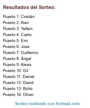 Resultados del sorteo: