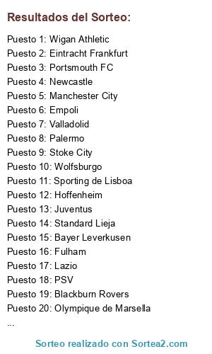 Lista de participantes: Palermo, Bayer Leverkusen, Real Murcia, AS Roma, Lazio, Stoke City, Reading, Olympique de Marsella, Standard Lieja, UD Almeria, AZ Alkmaar, Valladolid, Blackburn Rovers, Fiorentina, Hoffenheim, Independiente, Sporting de Lisboa, Birmingham, RCD Espanyol, Manchester City, Empoli, Fulham, Eintracht Frankfurt, PSV, Portsmouth FC, Borussia Dormundt, Wigan Athletic, West Ham, Dinamo Moscú, Wolfsburgo, Newcastle, Juventus.
