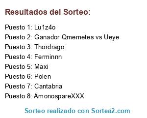 Lista de participantes: AmonospareXXX, Cantabria, Polen, Maxi, Lu1z4o, Ganador Qmemetes vs Ueye, Thordrago, Ferminnn.