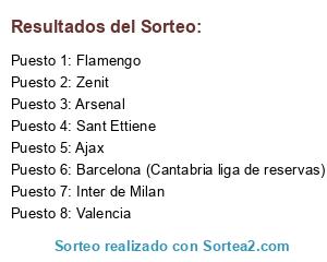 Lista de participantes: Flamengo, Arsenal, Sant Ettiene, Zenit, Barcelona (Cantabria liga de reservas), Valencia, Inter de Milan, Ajax.