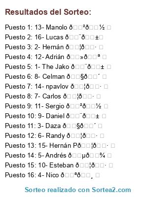Resultados del sorteo: