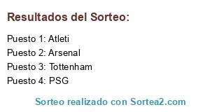 Lista de participantes: Atleti, Arsenal, PSG, Tottenham.