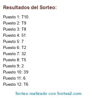 Resultados del sorteo:
