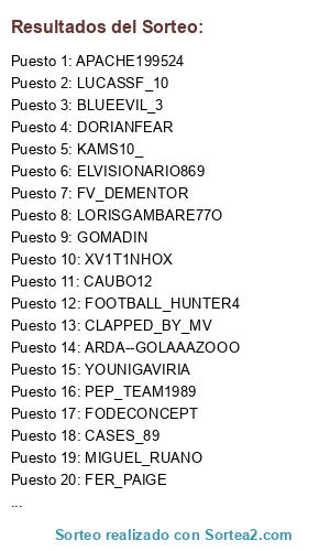Lista de participantes: MIGUELONXO31, ELVISIONARIO869, SEM___1907, JU20NO, F4R40N1988, CASES_89, CAUBO12, PEP_TEAM1989, PRATGGIO, CAPACHAO, AKI__992, HAITHEM 1_1, TRUEKIRA88, JC_STUNNER_90, ARDA--GOLAAAZOOO, BRUNOCOUTO_6, EXON_TOGA_10, ALONSOGRAYFOX, CLAPPED_BY_MV, PAUUU24, FER_PAIGE, ITURRAUSBITX, RAF_934, PEDRO__DELCERRO1, ZEUSINJO, GUTISTA-14-, LAZATHEGREEK, FODECONCEPT, TACHIN_6, MARCOSLG4595, MODELPIERO, JOCK_86, MIGUEL_RUANO, FV_DEMENTOR, LUCASSF_10, ALEX_RAMOS2, THEARCHITECT_27, MALASOMBRA21, LORISGAMBARE77O, PANOSBOUL-26, CESCSANS8, JAVILOTA_14, DORIANFEAR, MISSVANESSA90, APACHE199524, ANDREBBV94, XV1T1NHOX, GOMADIN, FOOTBALL_HUNTER4, HOKIIIO_, S-BALBOA7, FERRAN8R, DURBE_, GEO_VAMO22, KAMS10_, BLUEEVIL_3, YOUNIGAVIRIA, FABIO_SOUSA91, MICKEY94120, GREEK-MAFIA, ALEEEX_GRC, MARQUINYOS, ROKSAA22 , ABFORZ.