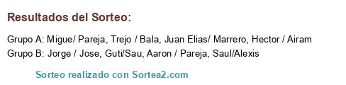 Lista de participantes: Trejo / Bala, Guti/Sau, Saul/Alexis, Juan Elias/ Marrero, Migue/ Pareja, Aaron / Pareja, Hector / Airam, Jorge / Jose.