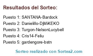Lista de participantes: Danielillo-DjMiKEKO, SANTANA-Bardock, Cris14-Feliu, Turgon-NelsonLucybell, gardengore-bstn.