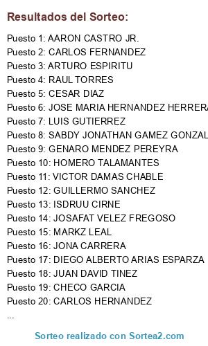 Resultados del sorteo:
