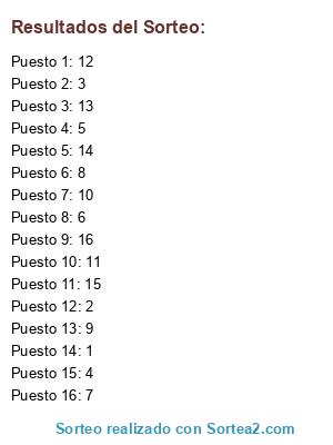 Resultados del sorteo: