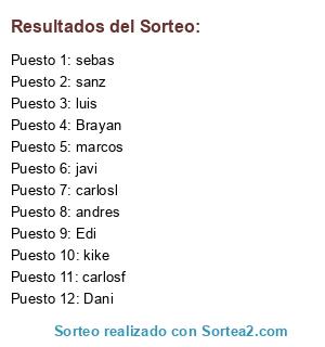 Lista de participantes: Dani, Edi, Brayan, marcos, kike, andres, luis, carlosf, carlosl, javi, sebas, sanz.