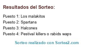 Lista de participantes: Halcones, Los malakitos, Spartans, Pestival killers o rabids waps.