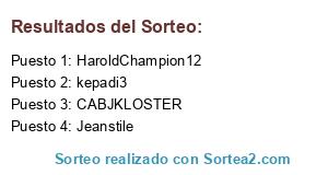 Lista de participantes: CABJKLOSTER, Jeanstile, kepadi3, HaroldChampion12.