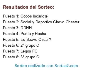 Lista de participantes: Cobos Iscariote, DDHH, Legos FC, Es Suave Oscar?, Punta y Hacha, Social y Deportivo Chevo Chester, 2° grupo C, 3° grupo C.
