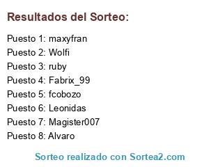 Lista de participantes: maxyfran, Leonidas, fcobozo, Wolfi, Fabrix_99, Magister007, ruby, Alvaro.