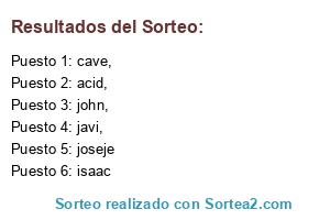 Lista de participantes: cave,, javi,, joseje, acid,, john,, isaac.