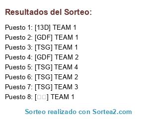 Lista de participantes: [TSG] TEAM 1, [TSG] TEAM 2, [TSG] TEAM 3, [TSG] TEAM 4, [GDF] TEAM 1, [GDF] TEAM 2, [13D] TEAM 1, [曼基] TEAM 1.