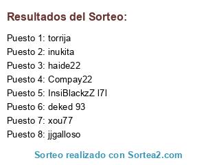 Lista de participantes: jjgalloso, torrija, Compay22, deked 93, haide22, InsiBlackzZ l7l, xou77, inukita.
