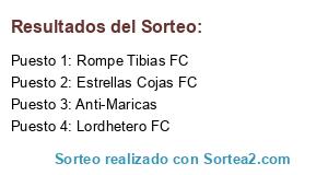 Lista de participantes: Lordhetero FC, Rompe Tibias FC, Anti-Maricas, Estrellas Cojas FC.