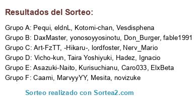 Lista de participantes: Pequi, -Hikaru-, Kotomi-chan, Caami, MarvyyYY, fable1991, eldnL, Vicho-kun, Asazuki-Naito, DaxMaster, novizuke, Vesdisphena, ElxBeta, Kurisuchianu, Nerv_Mario, Don_Burger, Caro033, Taira Yoshiyuki, yonosoyyosinotu, Ignacio, lordfoster, Art-FzTT, Mesita, Hadez.