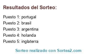Lista de participantes: españa, brasil, portugal, holanda, inglaterra, argentina.