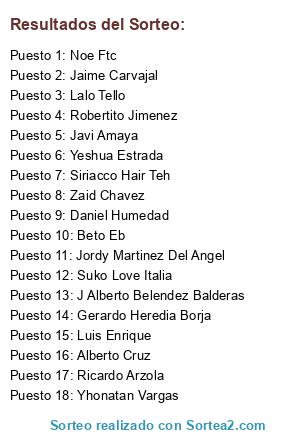 Lista de participantes: Daniel Humedad, Ricardo Arzola, Robertito Jimenez, Jordy Martinez Del Angel, J Alberto Belendez Balderas, Alberto Cruz, Noe Ftc, Gerardo Heredia Borja, Yeshua Estrada, Javi Amaya, Siriacco Hair Teh, Beto Eb, Suko Love Italia, Yhonatan Vargas, Luis Enrique, Jaime Carvajal, Lalo Tello, Zaid Chavez.