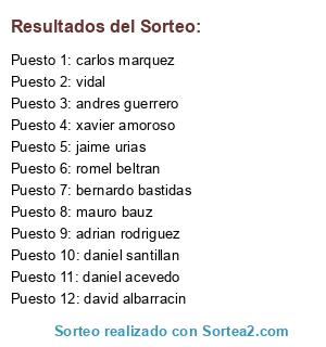 Resultados del sorteo: