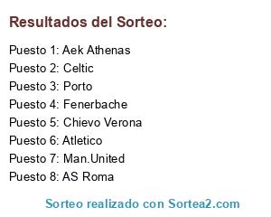 Lista de participantes: Man.United, Fenerbache, AS Roma, Aek Athenas, Chievo Verona, Porto, Atletico, Celtic.