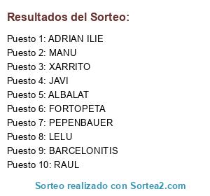 Lista de participantes: LELU, ADRIAN ILIE, MANU, FORTOPETA, ALBALAT, XARRITO, RAUL, JAVI, PEPENBAUER, BARCELONITIS.