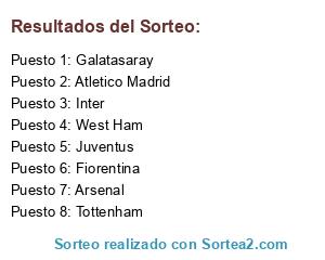 Lista de participantes: Tottenham, Galatasaray, Arsenal, Atletico Madrid, Juventus, Inter, West Ham, Fiorentina.