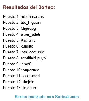 Lista de participantes: titojoin, jemy6, alber_atleti, tito_higuain, Katifurry, tetokun, jota_comunio, jose_medi, kunsito, scotifield puyol, rubenmarchs, superuce, Miguepg.