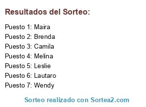Lista de participantes: Melina, Brenda, Maira, Leslie, Wendy, Lautaro, Camila.