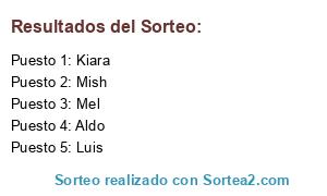 Lista de participantes: Mish, Mel, Aldo, Luis, Kiara.
