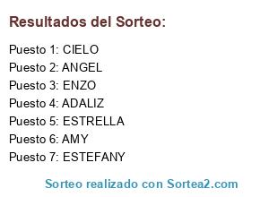 Lista de participantes: ESTRELLA, ANGEL, ENZO, CIELO, ESTEFANY, ADALIZ, AMY.