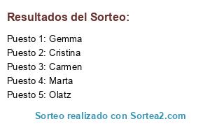 Lista de participantes: Cristina, Gemma, Carmen, Olatz, Marta.