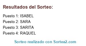 Lista de participantes: RAQUEL, ISABEL, SARITA, SARA.