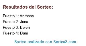 Lista de participantes: Belen, Dani, Jona, Anthony.