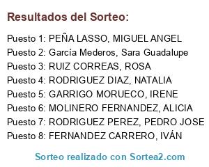 Lista de participantes: FERNANDEZ CARRERO, IVÁN, García Mederos, Sara Guadalupe, GARRIGO MORUECO, IRENE, MOLINERO FERNANDEZ, ALICIA, PEÑA LASSO, MIGUEL ANGEL, RODRIGUEZ DIAZ, NATALIA, RODRIGUEZ PEREZ, PEDRO JOSE, RUIZ CORREAS, ROSA.