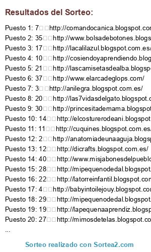 - Puesto 40: 13 http://elatelierdelbebe.blogspot.com.es/