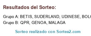 Lista de participantes: BETIS, UDINESE, MALAGA, BOLONIA, QPR, GENOA, SUDERLAND.