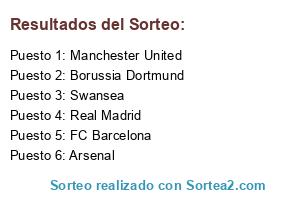 Lista de participantes: Real Madrid, Manchester United, FC Barcelona, Borussia Dortmund, Arsenal, Swansea.